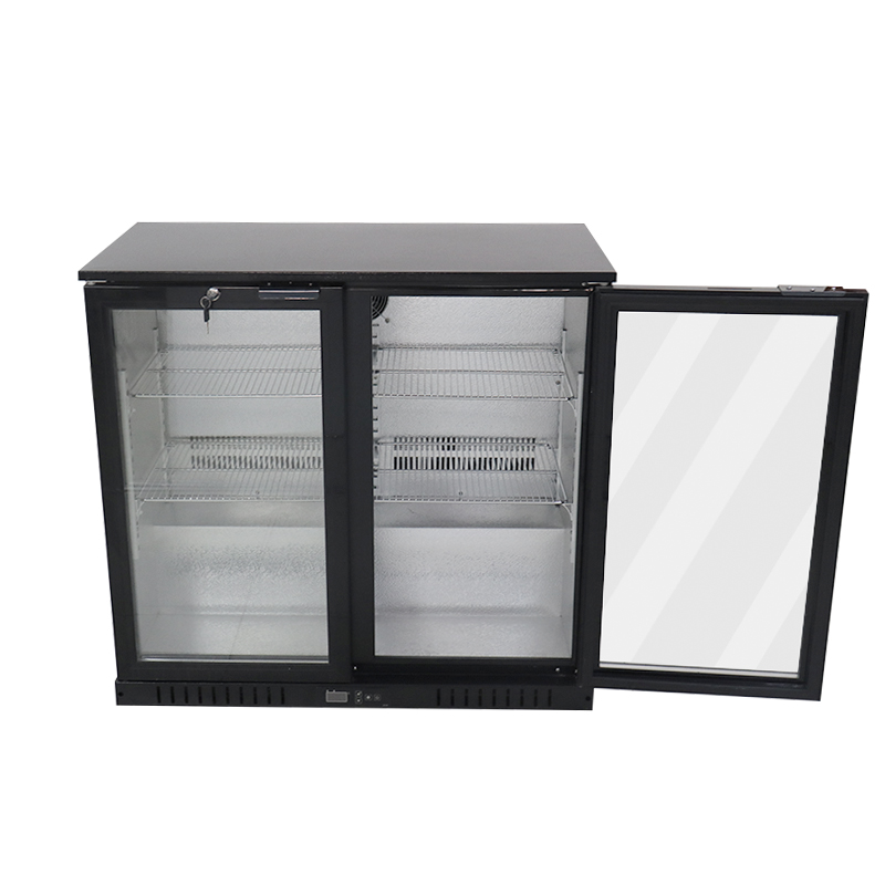The LED lighting and 2 swing glass door allow you to clearly see the location of the contents without opening the door, reducing cold air loss. Its beautiful black stainless steel housing can adapt to all types of bars, restaurants and clubs in style.