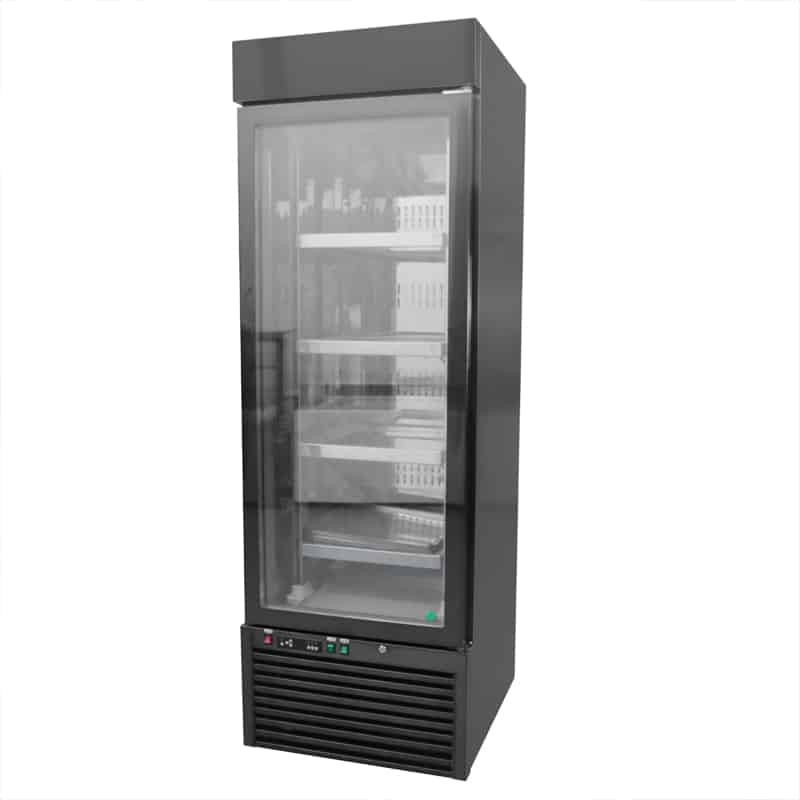 の glass door meat aging fridge is designed with brushed stainless steel plates, which is smoother and more beautiful. The stainless steel laser-cut integrated fan is beautiful and durable, with stronger and more uniform wind power. The all-stainless steel shelves allow you to adjust the height at will, thanks to the excellent Material, the machine is also easy to clean.