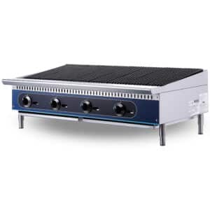 Ikan bakar komersial 4 penunu mempunyai 4 penunu yang dikawal secara bebas supaya anda boleh memasak hidangan berbeza serentak pada permukaan memasak yang besar. Ikan bakar ini dibina untuk bertahan, membawa kepelbagaian dan kemudahan ke dapur anda. memaksimumkan ruang untuk membantu meningkatkan pengeluaran. Dengan (4) 40,000 Pembakar U BTU, permukaan memasak ini termasuk parut besi tuang untuk memanggang sekata, dan ia juga mengumpul jus daripada daging lazat anda, menghasilkan nyalaan api dan asap untuk menghasilkan produk yang lazat!