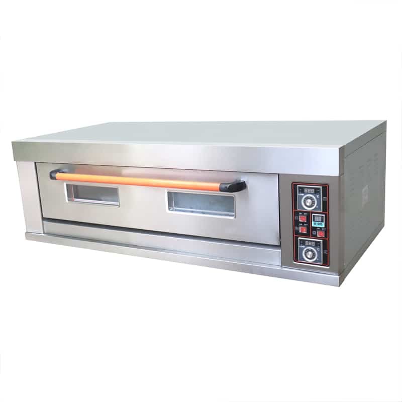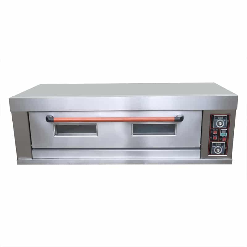 The 1 tray commercial bakery oven is equipped with a baking tray rack underneath for easy storage of uncooked food and baking trays. The double tempered glass and double fixing clips maintain the temperature and humidity inside the oven and keep the operator safe. You can freely choose high or low temperature according to your cooking needs. The machine is equipped with a steam replenishment function, so you don’t have to worry about the box being too dry.