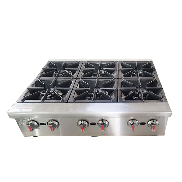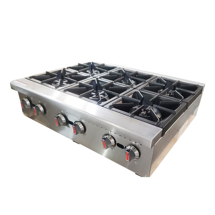 This 6 burner gas stove countertop fires up and cooks delicious pasta, soups and sauces with ease, saving time costs and increasing efficiency!