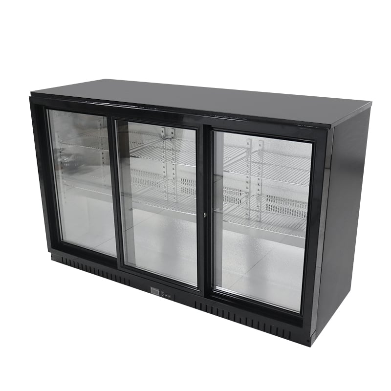 The six height-adjustable stainless steel shelves are not restricted by bottle size and will not corrode. In addition, the door comes with a separate lock to secure the contents of the back bar cooler 3 sliding doors.
