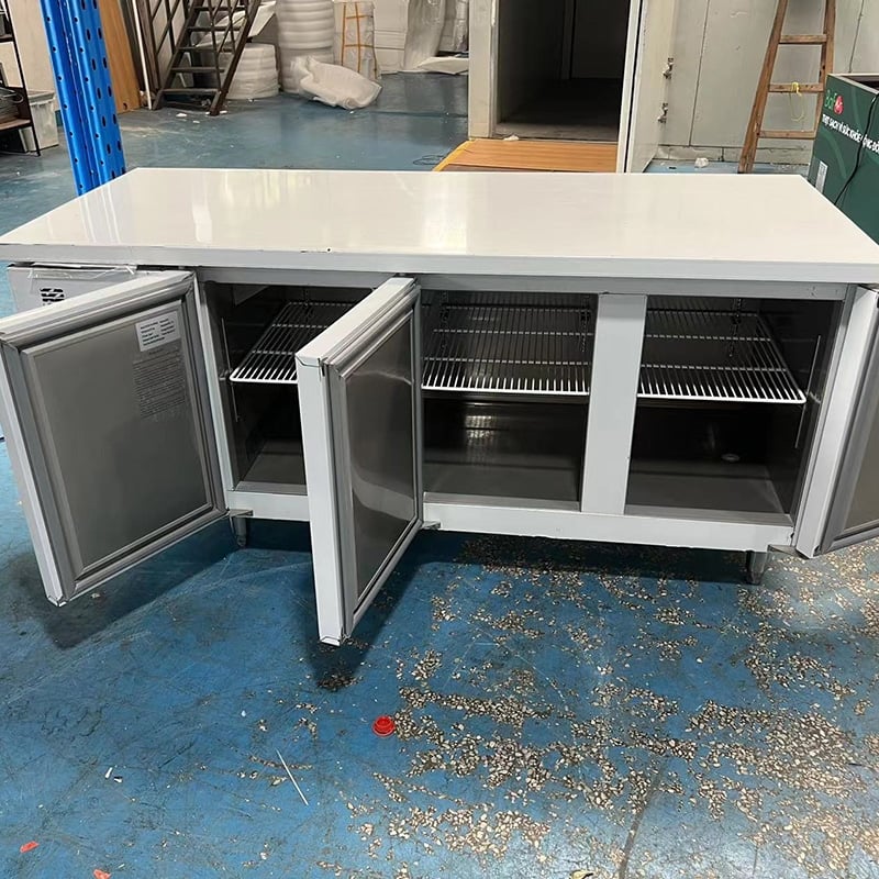 This best under counter refrigerators features a 3-door with shelf design for easy storage 350-watt compressor provides powerful power to ensure the unit works consistently and consistently. The flat and smooth countertop makes it a reliable workstation without taking up other space. The air cooling mode allows for more even cooling without frosting, improving the quality of food preservation. Its digital control panel and convenient casters make the 3 door undercounter refrigerator easy to use.