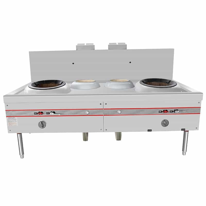This Chinese stove double gas range with a combustion fan is your best choice, it burns well, heats up quickly and improves cooking efficiency!