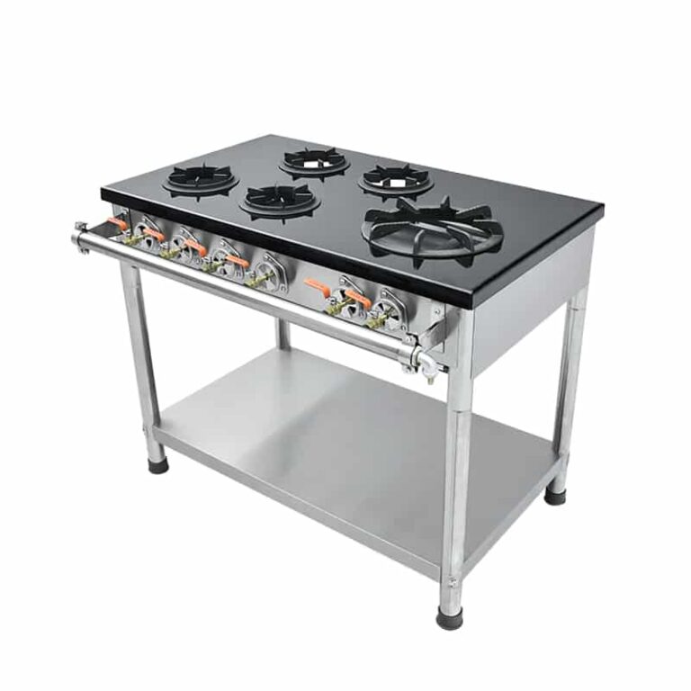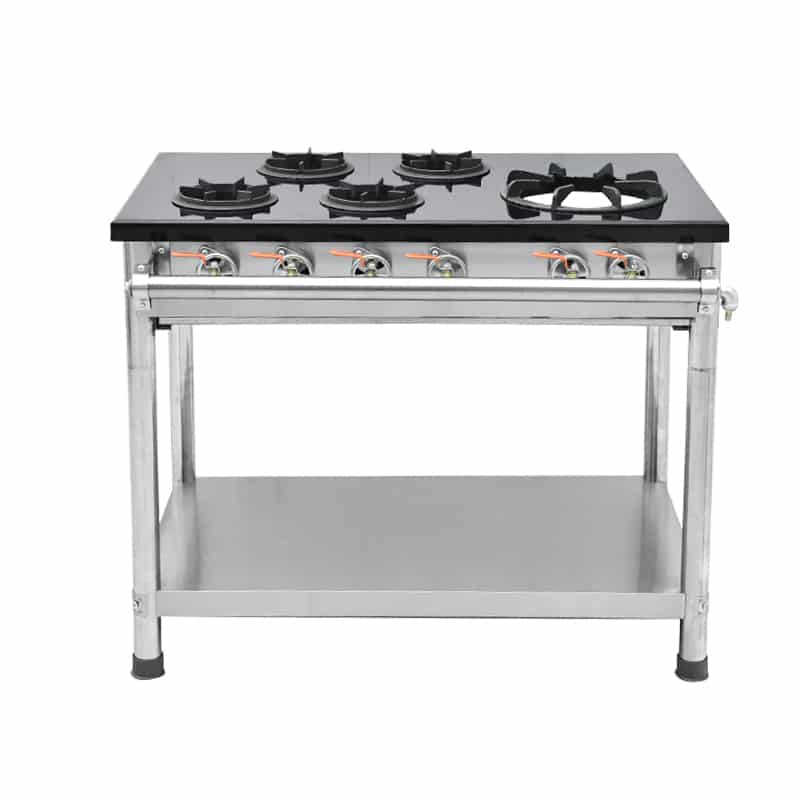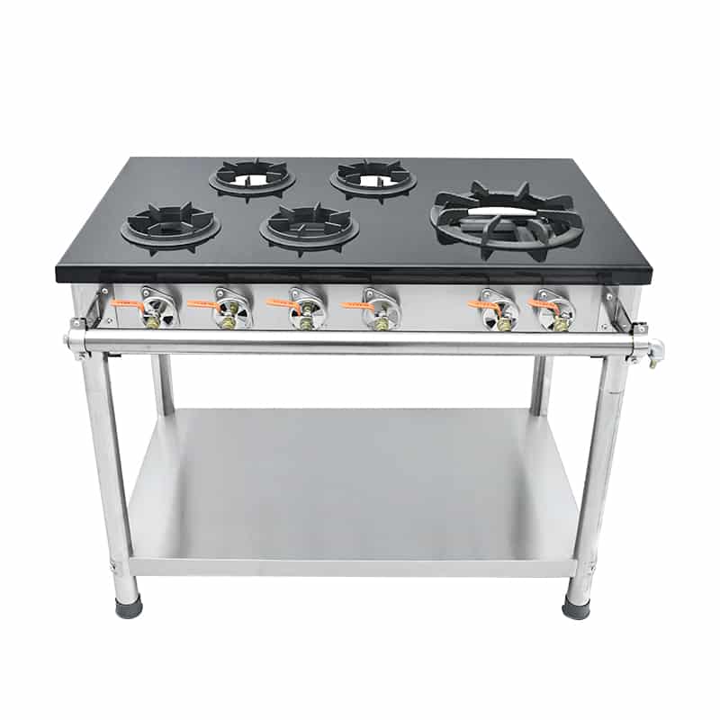 The ranges is made of 201 stainless steel and cast iron grate, with 1 large and 4 small burners on the iron plate, providing 17KW+28KW of power with excellent heating performance, and the unique energy-saving design makes it consume only 1/3 of the gas of a traditional blast stove. each burner has a separate adjustment valve, so the operator can freely adjust the fire or use only a few of them.