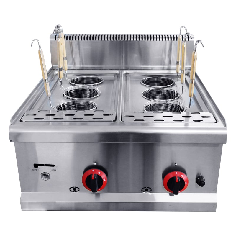 The non-slip support feet allow the six-head gas pasta cooker to sit smoothly on the countertop, saving space in the kitchen and not shifting during use.