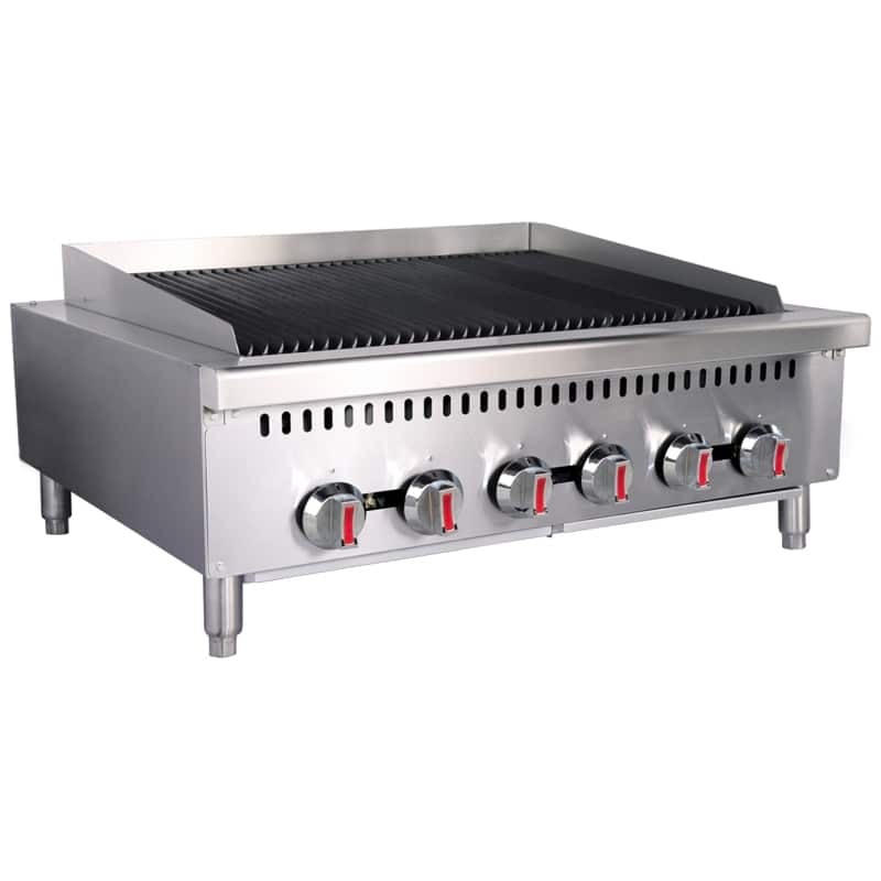 The surroundings of the commercial charbroiler grill 6 burners are protected from grease spills to protect the health and safety of the environment, and you can also use the grease tray to collect excess grease for dumping.