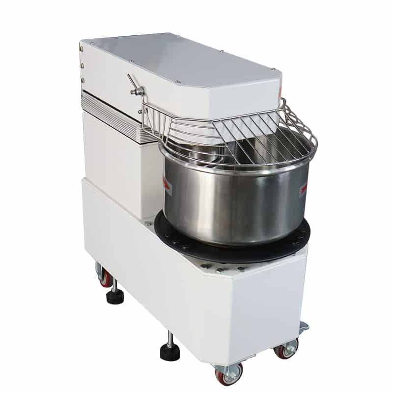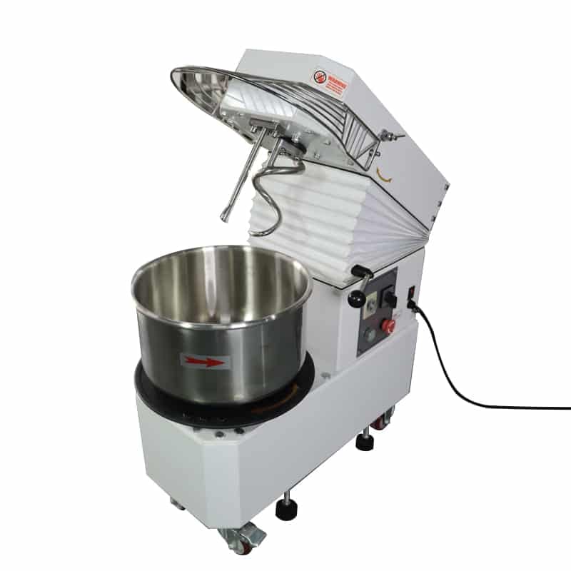 The overall stainless steel construction and reinforced base make the machine stable and durable for long hours of work in the kitchen. The stainless steel guard not only supports the addition of flour and other ingredients while running, but also protects the operator by automatically cutting off power when lifted. With gears and a pure copper motor providing 1,550W of power with low noise, you’ll be surprised at how much more efficient this machine is in your kitchen when using our lifting type dough mixer.