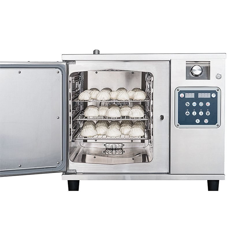 The steam is evenly distributed to the inner hall of the steaming cabinet, which is the exception for the food to be fully and quickly heated, keeping fresh and delicious.