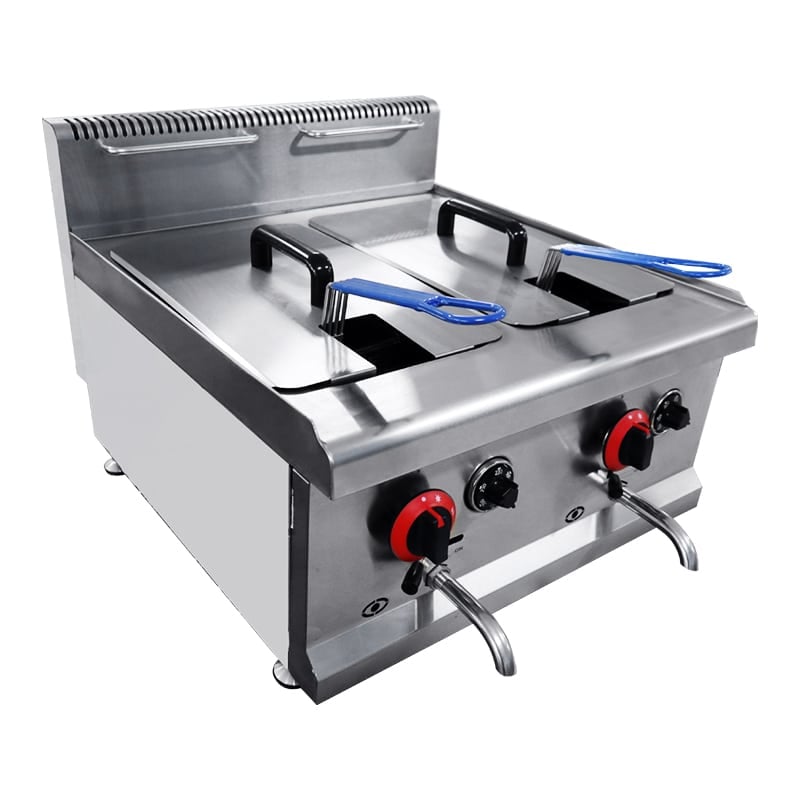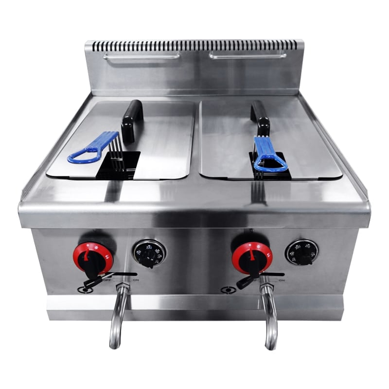 This commercial gas deep fryer can cook ingredients quickly and help make your kitchen more efficient!