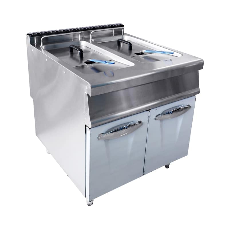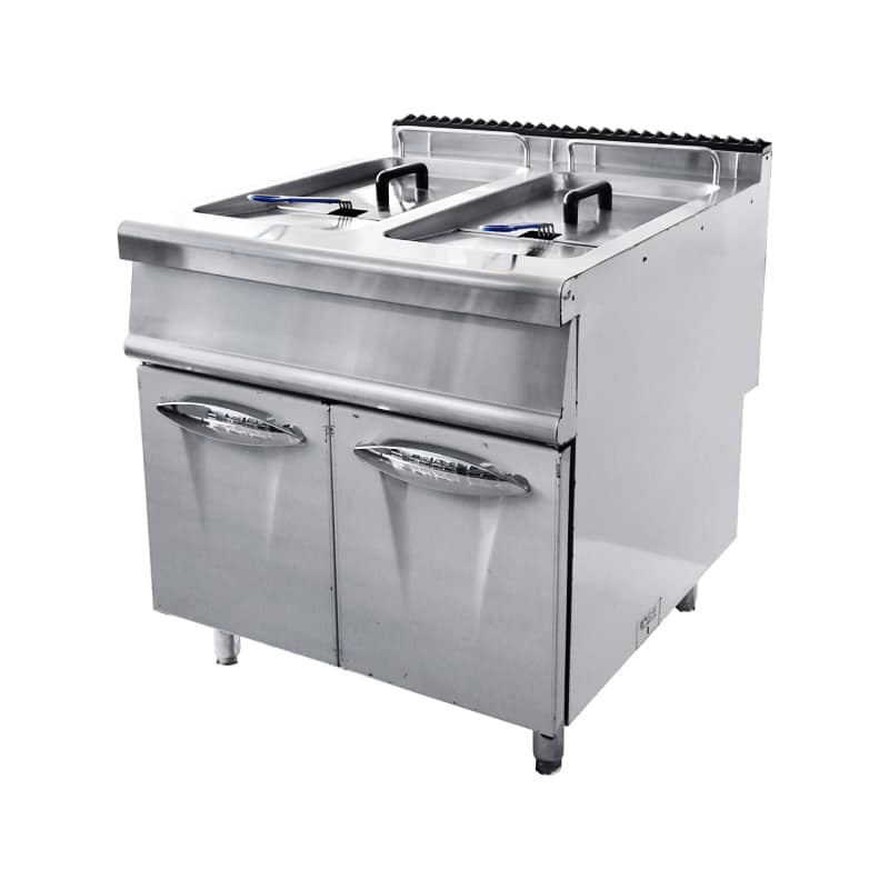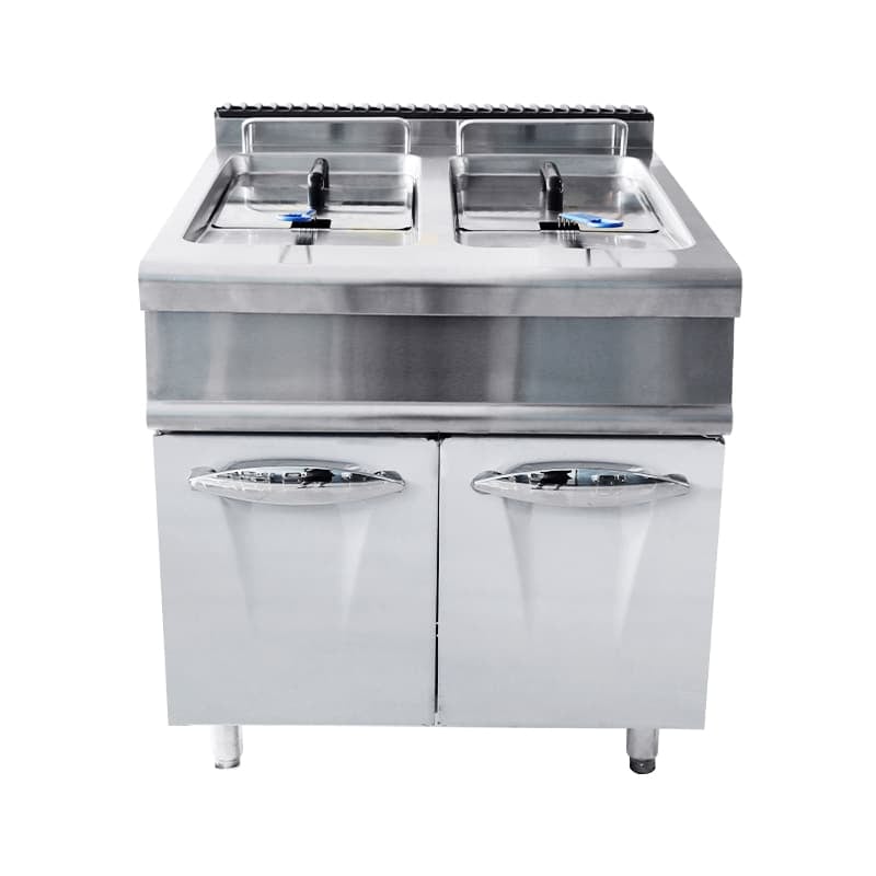 The basket, tank and housing are made of stainless steel, which is not easy to rust and corrosion, and easy to clean. In terms of safety, the non-slip support feet allow the double-tank deep fryer to be placed smoothly on the ground during use without moving.