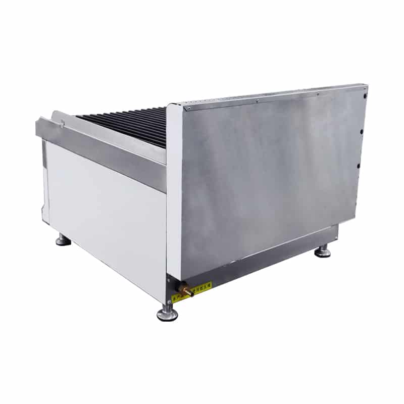 Equipped with a removable grease tray. Excess grease and water enters the tray through the collection port at the front for easy dumping and cleaning after cooking.