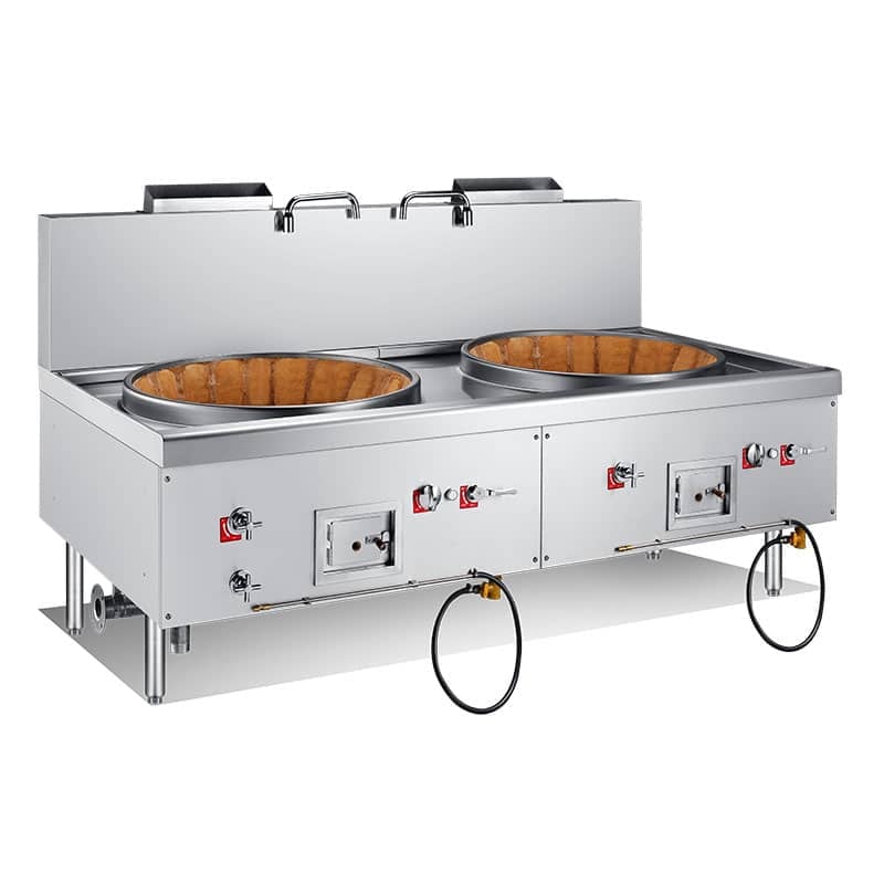 Use this double burner large frying gas stove with a blower for full gas combustion, energy savings and more efficient cooking!