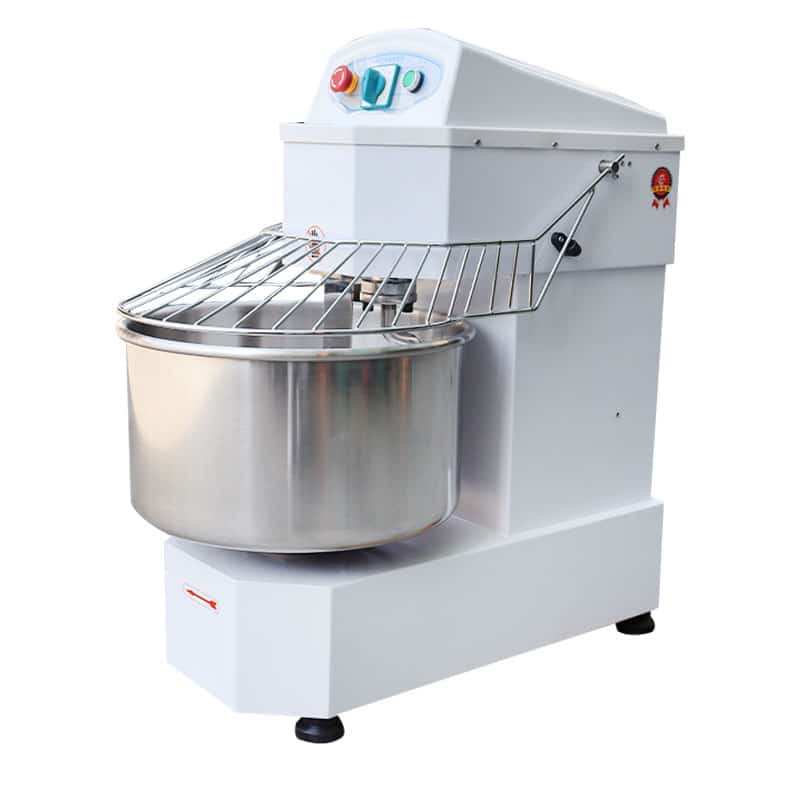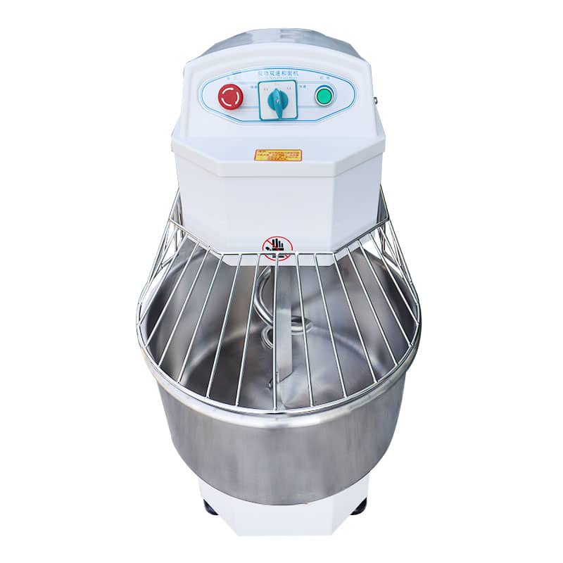 It is equipped with protective cover and emergency stop switch to protect the operator’s safety, and the reinforced body and heat dissipation holes ensure the double speed large dough mixer runs stably for a long time in the commercial kitchen.