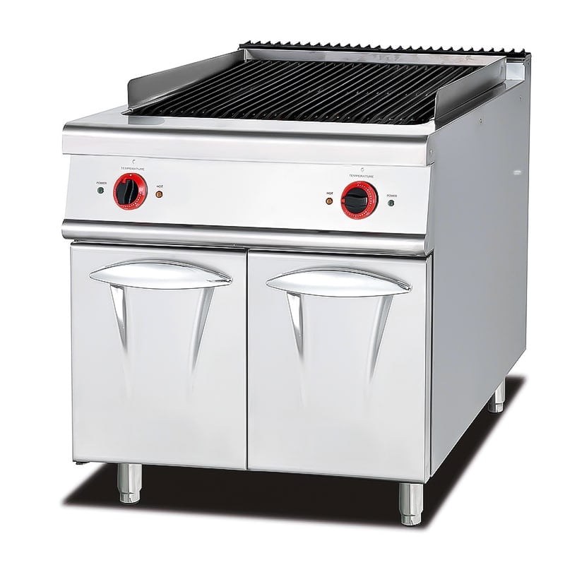 This gas lava rock with cabinet can precisely control the temperature to ensure that the food is delicious and nutritious. It can quickly heat up to a certain temperature, allowing your food to be served quickly, and is a good helper to improve your kitchen efficiency. In addition, the whole machine is made of stainless steel, which has excellent corrosion resistance and pressure resistance, and can withstand the harsh environment in commercial kitchens. The heat pipe is a U-shaped design, which can make the heat of the cast iron more uniform to ensure the best cooking effect. Equipped with a detachable scum tray, which can collect excess grease or other food residues to ensure that it will not affect your cooking work, and the detachable design is just convenient for cleaning and use.