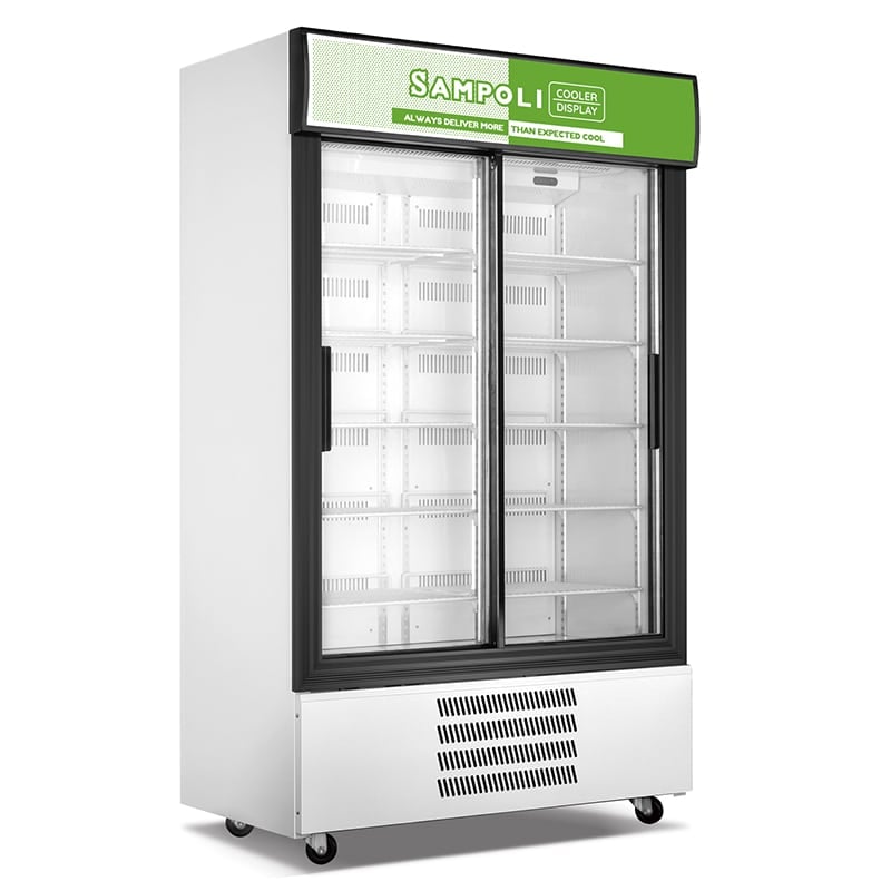 This glass door merchandiser refrigerator is a sliding door design, so it requires minimal frontal clearance for easy access and does not need to swing outward like a sliding door, making it ideal for narrower aisles and locations where space is tight.