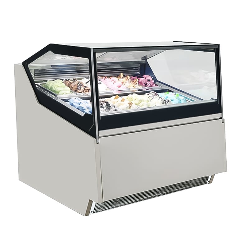 The high quality and fully enclosed refrigeration compressor unit can run smoothly and quietly. With the double-layer transparent glass design, you can see the status of each kind of ice cream clearly and comprehensively. Convenient casters allow for smooth operation and easy installation and movement, making ice cream display freezer a great choice for any ice cream parlor or coffee shop!