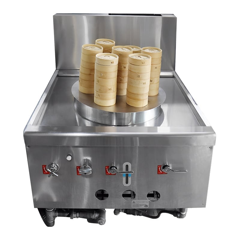 This industrial gas range cooker is suitable for steaming steamed buns, buns, dumplings and other pasta and some pastries, and the rotating tap makes it easy to refill water during use. In terms of safety, the high-precision sensor can sense abnormal flame out and automatically stop the gas supply.