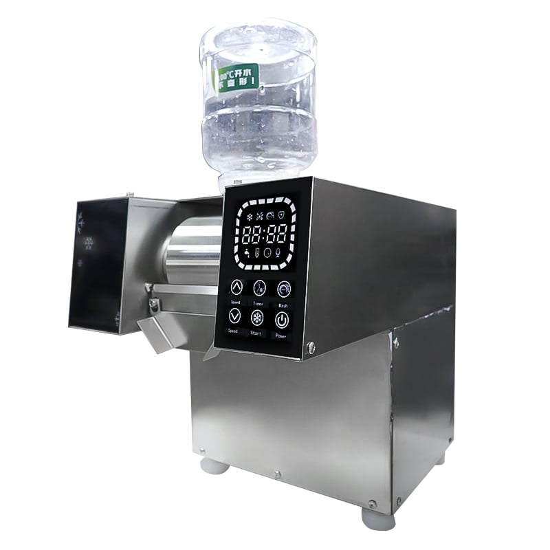 The high-temperature resistant bucket allows you to not have to wait for the water with melted syrup and powder to cool down, and you can also operate the best air-colded ice shaver for bingsu with one touch on the smart touch screen to automatically clean and shut off the machine when finished, making it easy to complete the task of cleaning after business. Whether you are a franchise dessert store or a restaurant with a dessert section on the menu, this machine can help you establish a unique advantage.