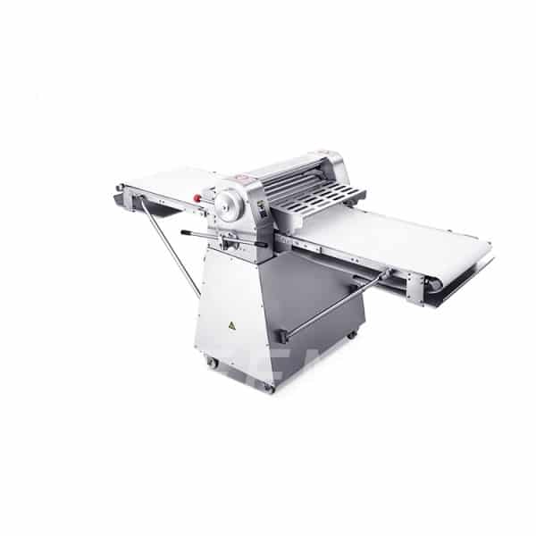 This semi-automatic dough sheeter gives baked goods a crispy crust and a food-grade conveyor belt that meets the high hygiene standards of modern kitchens!