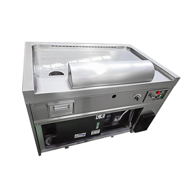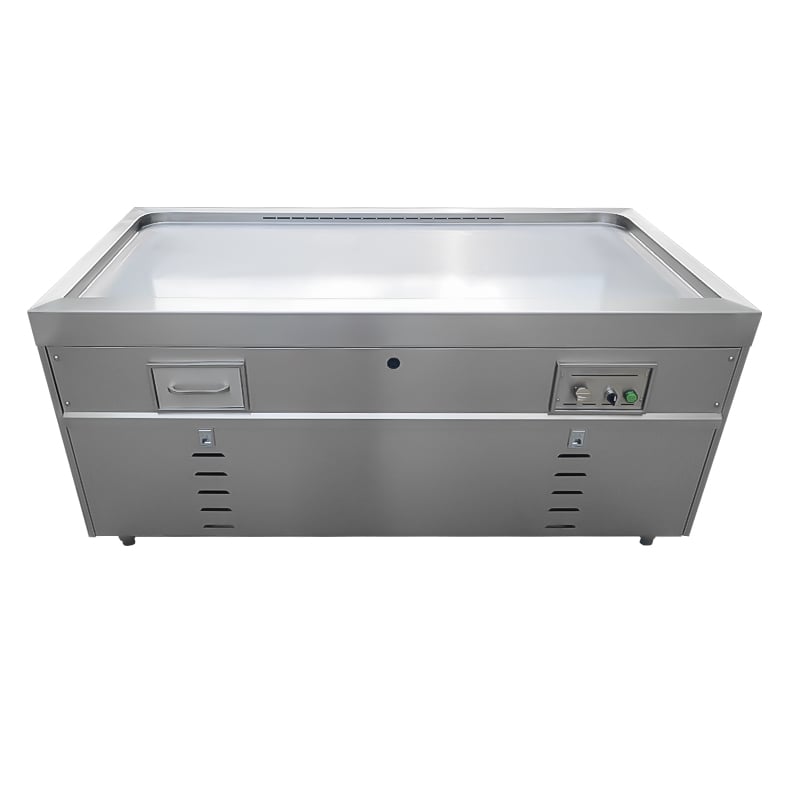 The 1.2-meter-long, 15mm-thick heating panel of the teppanyaki grill commercial allows for even heating of ingredients and is equipped with a fan to help fully mix and burn the gas with oxygen, increasing combustion efficiency. The smooth flat top is suitable for frying vegetables, fish, beef and seafood, and is also ideal for snacks such as bacon and cheese.