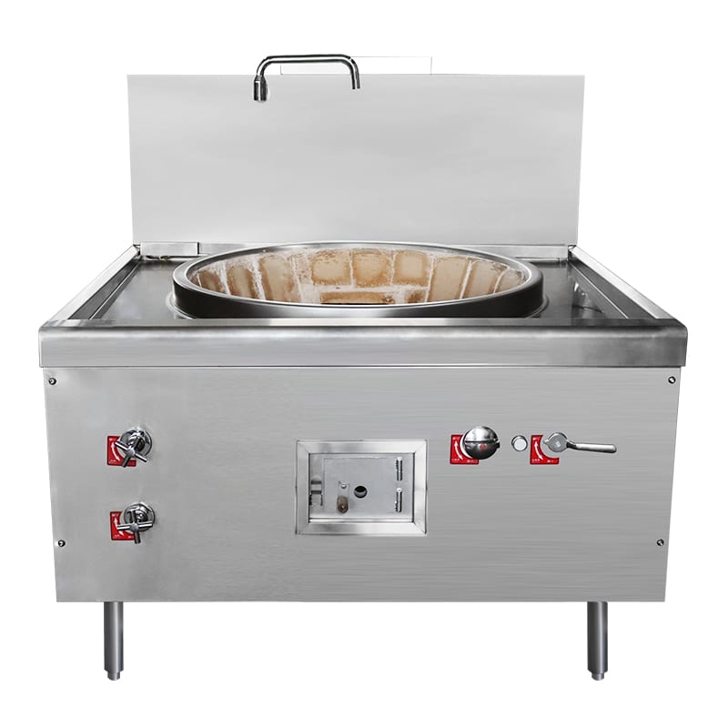 This gas stove is suitable for larger frying pans, with durable high-temperature resistant stove rings and equipped with a combustion aid fan to improve combustion efficiency. The rotatable tap makes it easy for the operator to catch water, and the cooling water curtain allows the unit to work for a long time. In terms of safety, the flame out sensor pin detects accidental flame out and immediately and automatically cuts off the gas supply, and the oven frame panel is made of effective heat insulation material to prevent burns.