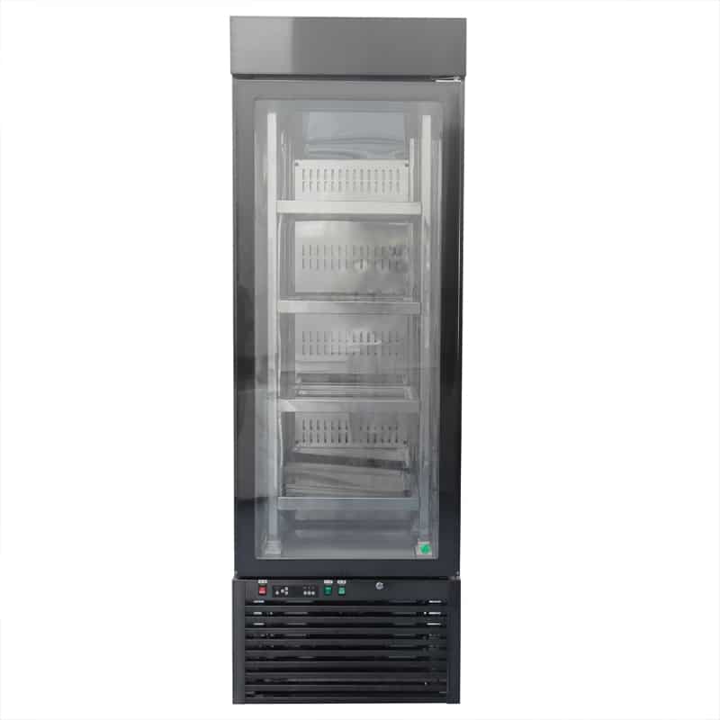 The commercial glass door meat aging cabinet is equipped with double-layer stainless steel glass doors and LED lights, so you can see the ripening status at any time. It is also equipped with an ultraviolet sterilization lamp that automatically lights up. Short-term sterilization can avoid killing beneficial fungi and make the meat more flavorful.